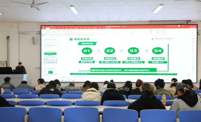 讲座围绕家庭经济困难学生认定、国家奖学金、国家励志奖学金、综合奖学金、王震奖励基金、国家助学贷款、大学生医疗保险、基层就业学费补偿代偿以及国防教育等九大板块展开,全面覆盖学生在校期间可能涉及的各类资助项目。