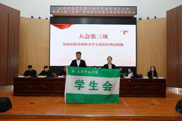 3各组织指导教师为第六届学生组织管理层授旗。旗帜在手中传递,象征着学生组织的精神与使命在新一届骨干中接续传承,也激励着他们以崭新的面貌开启学生工作新征程。