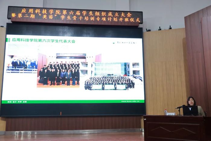 成立大会落幕后,学院“英苗”学生骨干培训班第一讲随即开启。党委副书记刘芳芳以《明职责、强素质、转作风——打造优秀学生骨干队伍》为题,为全体学生骨干授课。