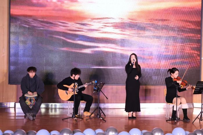 演出临近尾声,全体选手共同登台,齐声唱响《亲爱的你啊》。悠扬歌声中,饱含对现场师生的诚挚感谢,也为这段温暖时光画下圆满句点。