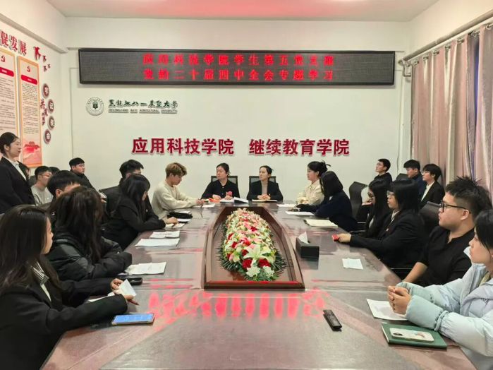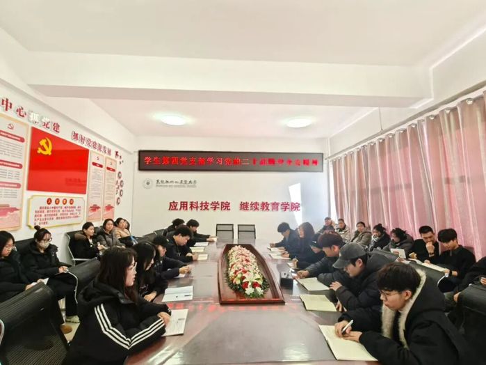 为深入学习贯彻党的二十届四中全会精神,近日,应用科技学院组织各学生党支部及全体党员开展专题学习。活动通过多种形式引导党员深刻领会全会精神实质,切实把思想和行动统一到党中央决策部署上来。本次专题学习活动采取支部书记领学、党员集中研讨自学、支部书记讲党课等多种形式,确保学习取得实效。学院各学生党支部书记带头领学,围绕全会审议通过的《中共中央关于制定国民经济和社会发展第十五个五年规划的建议》,深入解读全会精神的核心要义和实践要求。