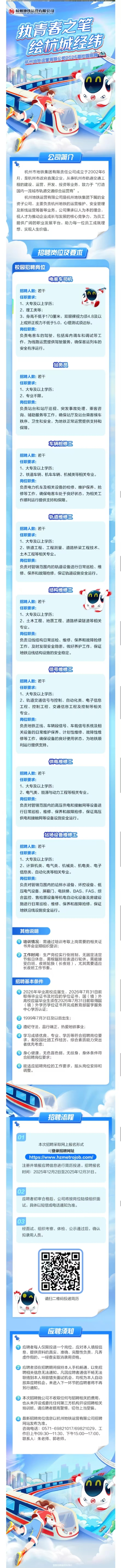 招聘信息 | 杭州地铁运营有限公司2026届校园招聘