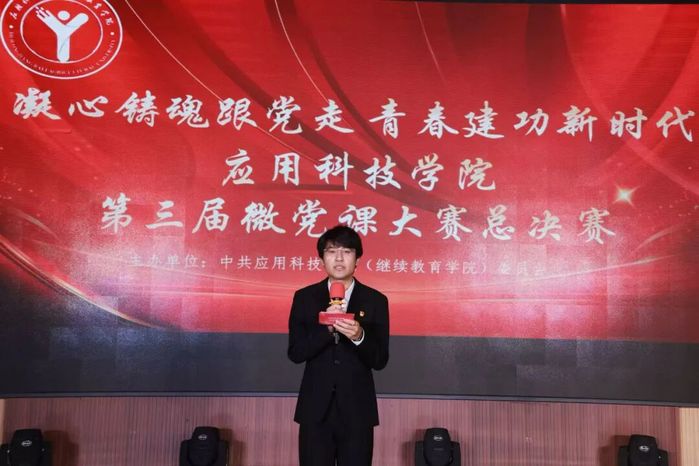 为深入学习贯彻习近平新时代中国特色社会主义思想,认真学习领会党的二十届四中全会精神,传承红色基因,凝聚奋进力量,结合“一二·九”运动历史背景,进一步加强学生党员思想政治建设,激发广大青年党员的责任感与使命感,12月8日,应用科技学院举办了“凝心铸魂跟党走 青春建功新时代”第三届微党课大赛总决赛。应用科技学院党委书记高波、党委副书记刘芳芳、校组织部组织科科长吴国军、校明理知行辅导员宣讲团副团长金馨悦、学院分团委负责人王明瑶出席本次活动并担任评委。