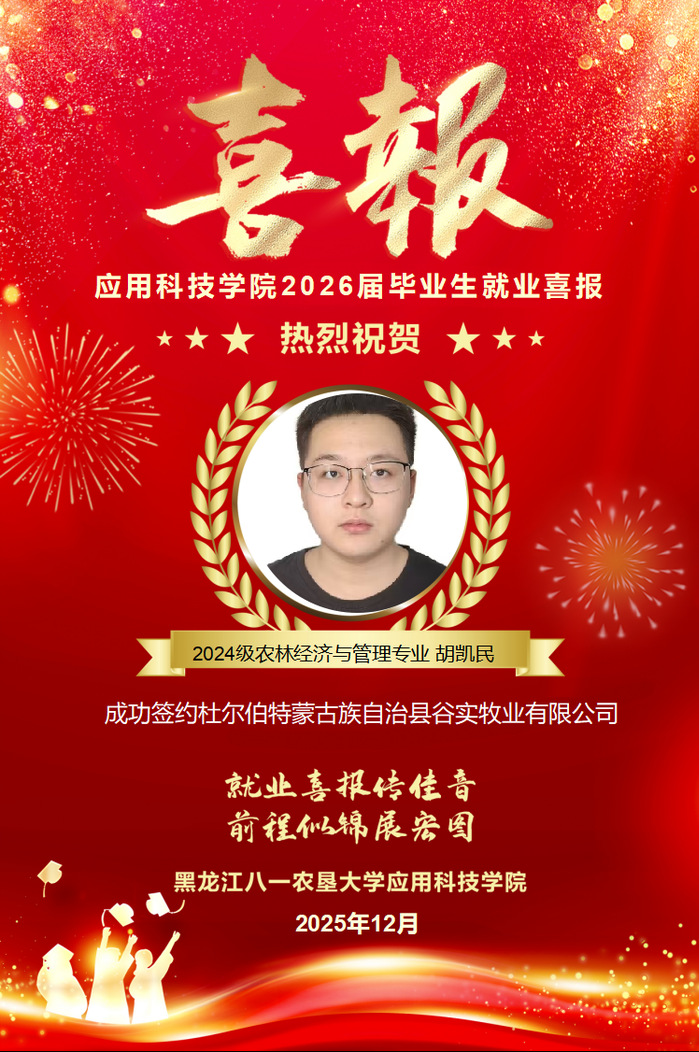 热烈祝贺学院胡凯民同学成功就业!