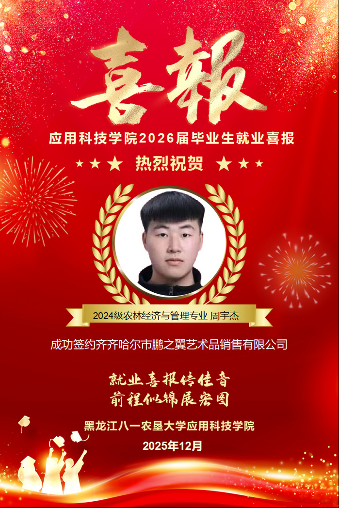 热烈祝贺学院周宇杰同学成功就业!