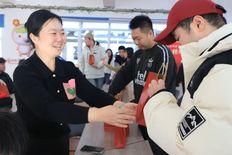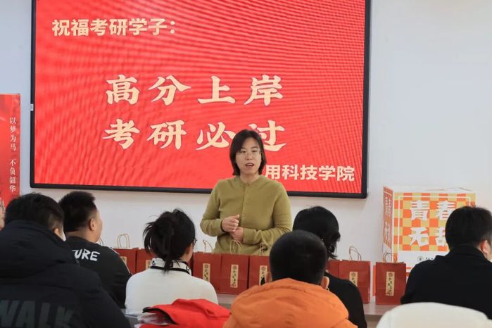 党委副书记刘芳芳与全体辅导员老师来到现场,将精心准备的考研助力礼包一一送到学生手中。