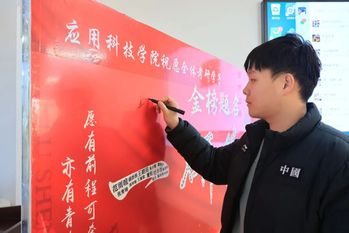 活动现场,一面写有“一研为定”的签名墙格外醒目。同学们手持彩笔,郑重写下自己的姓名和心仪院校,一笔一划中透露出对梦想的坚持,也展现出冲刺阶段的昂扬斗志。大家在签名墙前相互鼓励、交流备考心得,真挚的情谊与奋进的气氛交融,传递出温暖与前进的动力。