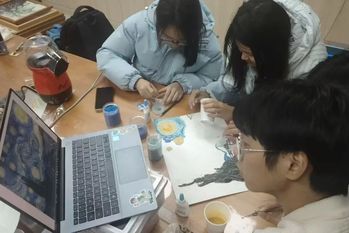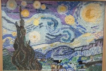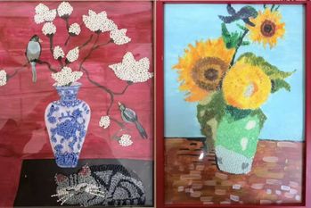 实践中,团队成员秉持精益求精的态度,深研种艺画的每一个细节。在浓浓的年味中,成员们以种子为媒介,创作了一批既有传统韵味又不失现代感的新年主题画作,传递对美好生活的向往。此外,通过巧妙运用染色大米,成员们还尝试复刻工艺要求极高的梵高名作,将《星空》与《向日葵》的经典之美成功融入种艺画中,实现了传统与现代、东方与西方的艺术交融。此次实践活动不仅是一次技艺的学习,更是一堂生动的“美育课”。
