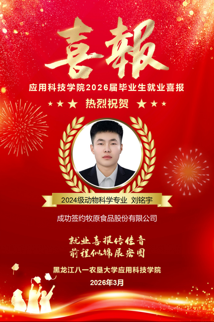 热烈祝贺学院刘铭宇同学成功就业!