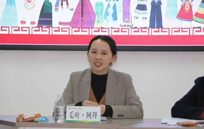 活动伊始,毛叶・阿拜老师生动阐释“石榴籽” 精神,将各民族像石榴籽般紧紧相依、守望相助的深意娓娓道来。她重点介绍了学院 “农籽同心” 辅导员工作室,以及 “石榴籽・民族说”“一节一特色” 等系列民族文化活动,话语间满是对民族学生的关切与期许,真诚邀请大家主动融入校园、展现青春风采,让现场瞬间弥漫起 “家” 的温暖与归属感。