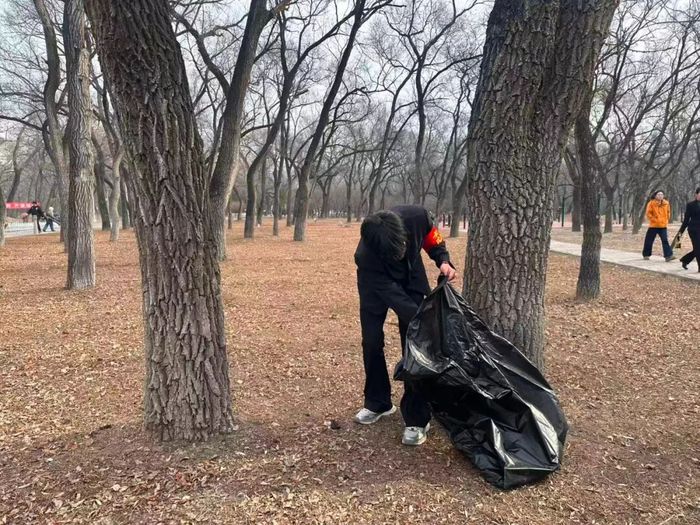 英烈祭奠活动结束后,师生们在大庆城市森林公园开展垃圾捡拾、环境清洁志愿服务。大家分工协作、认真清理各类垃圾,以实际行动践行英烈精神、守护绿色家园,让红色基因与生态理念在实践中落地生根。